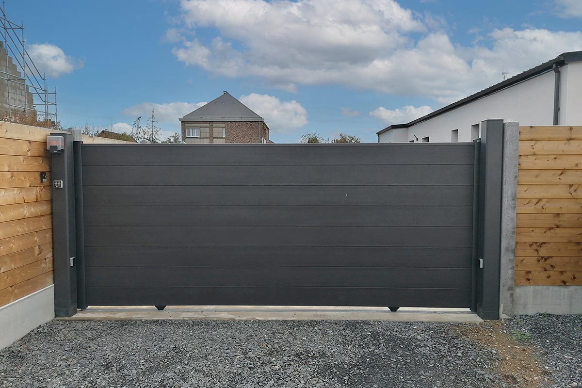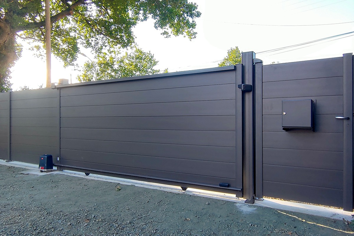Le portail coulissant Phénix mise sur un plein 100 % alu, doux à manœuvrer et simple à motoriser. Lames larges, guidage sur rail, accessoires complets. 5 couleurs de la gamme Optimo pour matcher la façade. Pour les grandes ouvertures, c’est la solution au look net et à l’intimité totale.