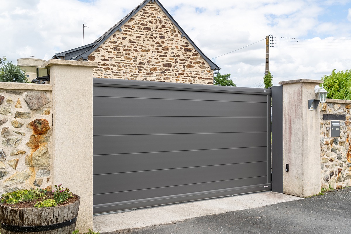 Portail coulissant Signature Origin - Mayenne (53) Gamme : SignatureModèle : Origin C 255Coloris : Gris 2900 sablé